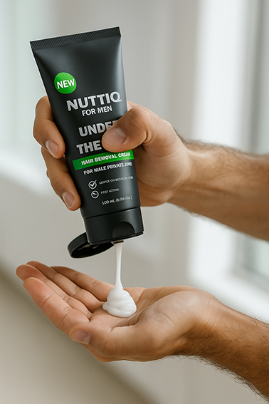NUTTIQ™ Intimate Depilatory Cream is a game-changer in grooming, created specifically for men who want a smooth, clean finish below the belt without the pain of shaving or waxing. Developed with sensitive male areas in mind, our cream removes unwanted hair from the groin, scrotum, pubic region, and perineum quickly, effectively, and gently. Infused with soothing ingredients, it helps minimize irritation while leaving skin soft and hair-free in minutes.